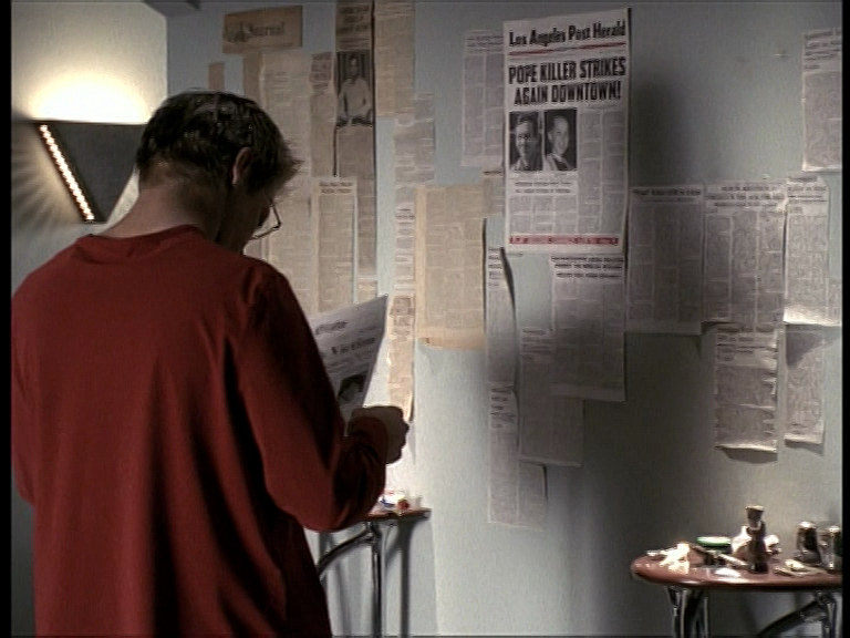 ■ On peut voir que l’article de la Une du Los Angeles Globe que Wesley lit fait référence à une histoire d’appartements, mais plus tard quand il le montre à Cordelia, c’est un tout autre article dont il s’agit, titré « Third Victim Found in Alley ».