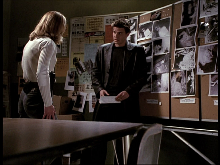 WESLEY : Lorsque j’étais en service à Sunnydale, en tant qu’expert en vampirologie, j’ai effectué de nombreuses recherches, et en particulier sur Angel… étant donné son rapprochement délicat avec la Tueuse.