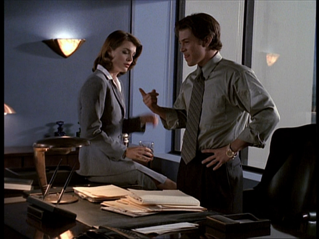 ■ Angel a son premier contact avec Lilah Morgan ; l’avocate rivale de Lindsey McDonald, que nous retrouverons pour un rôle récurreent et de plus en plus important dès l’épisode « 1×18 Cinq sur cinq ».