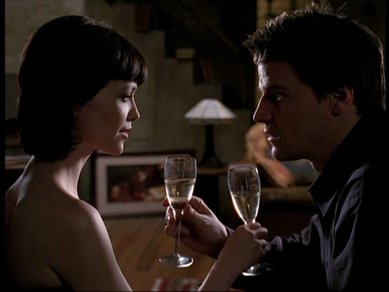 ■ Angelus et Rebecca discutent des représentations de Dracula à l’écran, que Buffy affrontera bientôt dans « 5×01 Buffy contre Dracula ».