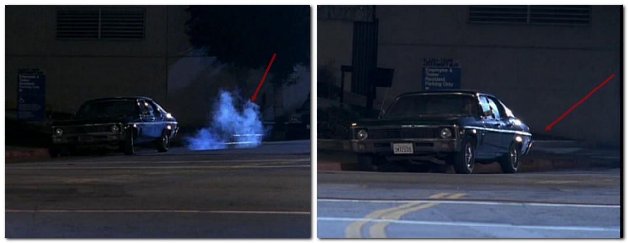 ■ Quand Angel regarde la voiture en embuscade, un nuage de fumée sort du pot d’échappement. Puis la caméra se détourne moins d’une seconde et lorsqu’on revient sur la voiture, il n’y a plus de fumée !