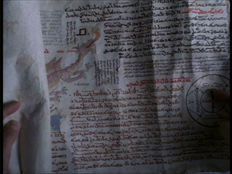 ■ Le titre VF de cet épisode est « 2×22 Le manuscrit », en clin d’oeil au dernier épisode de la saison 1 de Buffy intitulé lui aussi « 2×12 Le manuscrit ». Ici, il est question du parchemin de la prophétie Shanshu qui annonce la potentielle mort d’Angel. Dans le final de la saison 1 de Buffy, il était question du codex, qui contenait les prophéties de la Tueuse et de sa probable mort. La VF s’est donc amusé à faire un clin d’oeil. De même, en miroir avec Buffy, le premier épisode de la saison 1 s’intitule « 1×01 Bienvenue à Los Angeles », pour faire un clin d’oeil à « 1×01 Bienvenue à Sunnydale ».