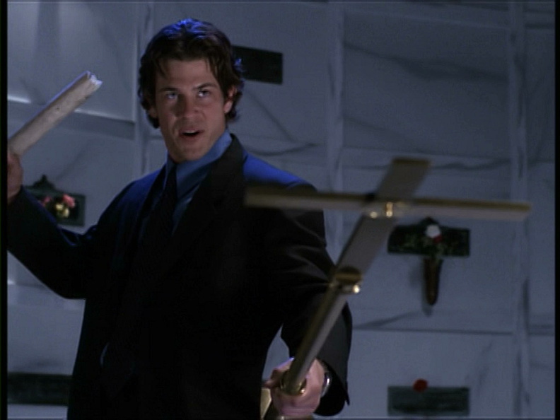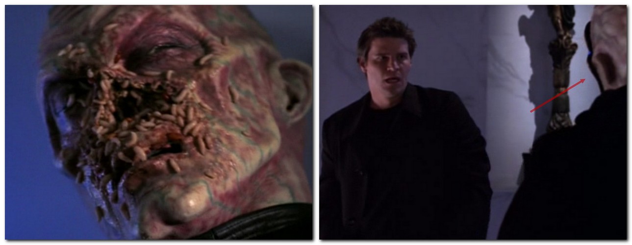 ■ A la fin de l’épisode, Lindsey a le bras coupé par la faux lancée par Angel. Il gardera cette infirmité jusqu’à sa greffe dans « 2×18 Impasse ».