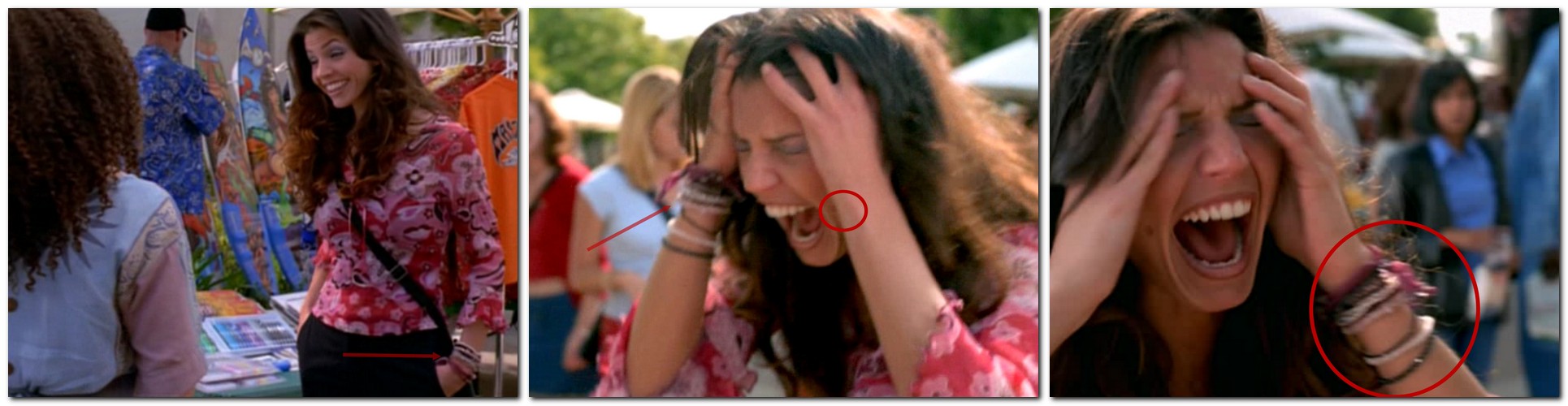 ■ Au marché, quand Cordélia souffre de ses visions, son bracelet passe du poignet gauche au droit, avant de revenir au poignet gauche !