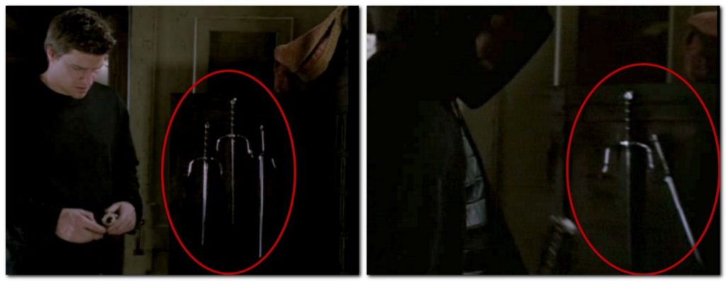 ■ Quand Angel ouvre pour la 1e fois l’armoire où il range ses armes, trois saïs sont accrochés à la porte de gauche. Quand Vocah l’ouvre peu après, il n’y a plus qu’un saï et une dague !