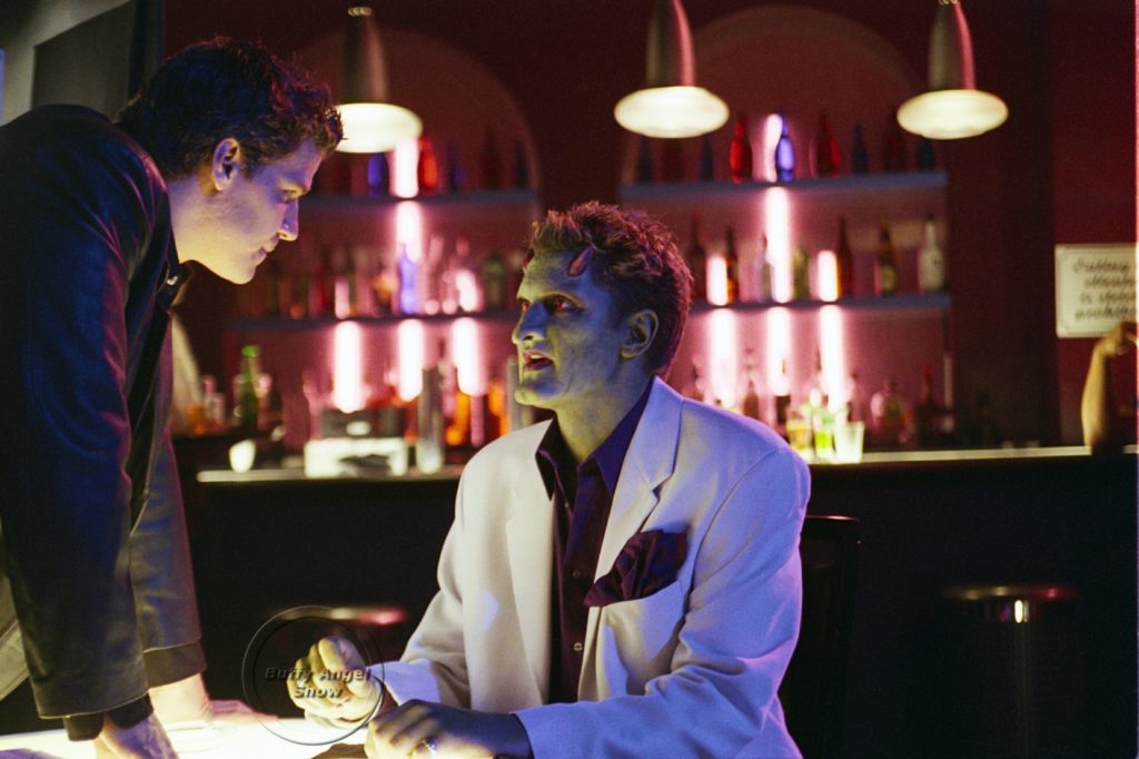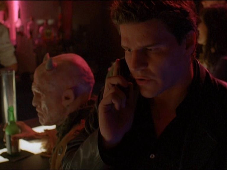 ■ Les démons Mordar et Durthock étaient déjà présents au Caritas dans « 2×01 Le jugement ». Durthock, le mangeur d’enfants, qu’Angel menace après sa conversation au téléphone, était celui qui chantait Achy Breaky Heart juste après le passage d’Angel sur scène.