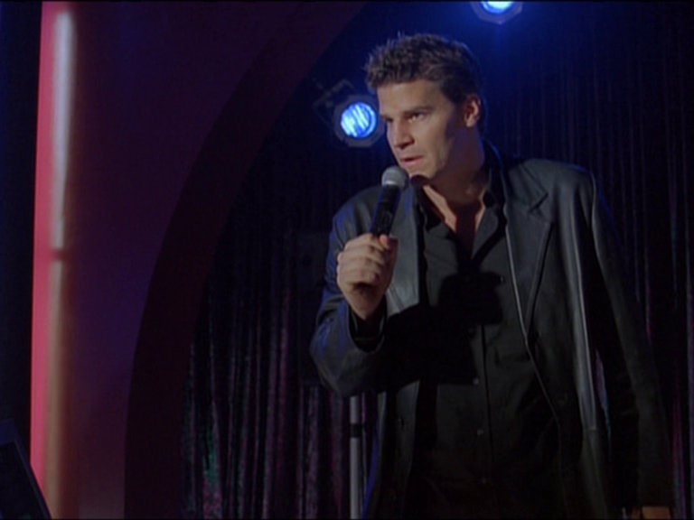 ANGEL (se penchant sur Wesley, respirant son odeur) : Tu as fait l’amour hier soir, avec une blonde.