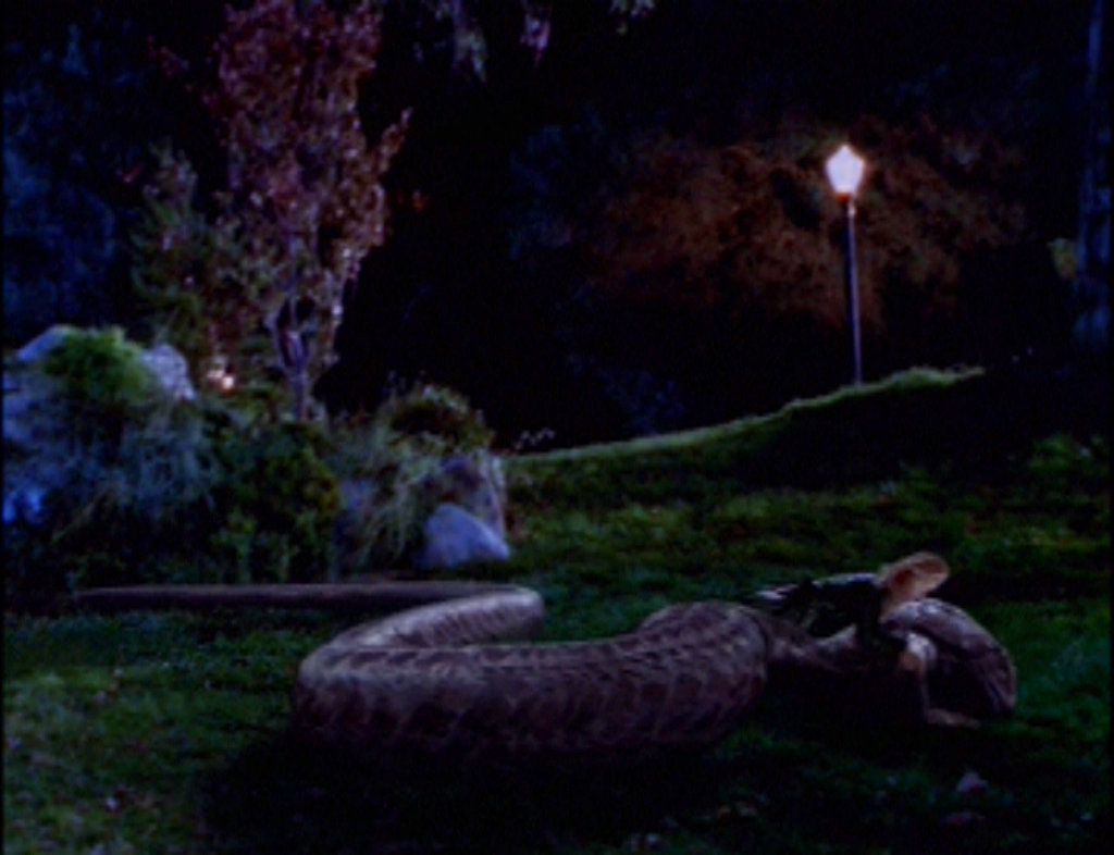 Giles et Buffy se lancèrent en voiture à la poursuite du serpent rampant dans les rues de Sunnydale. Buffy rattrapa la créature dans un parc, à quelques mètres de la demeure de Gloria, et parvint à l’étranger avec un chaîne.