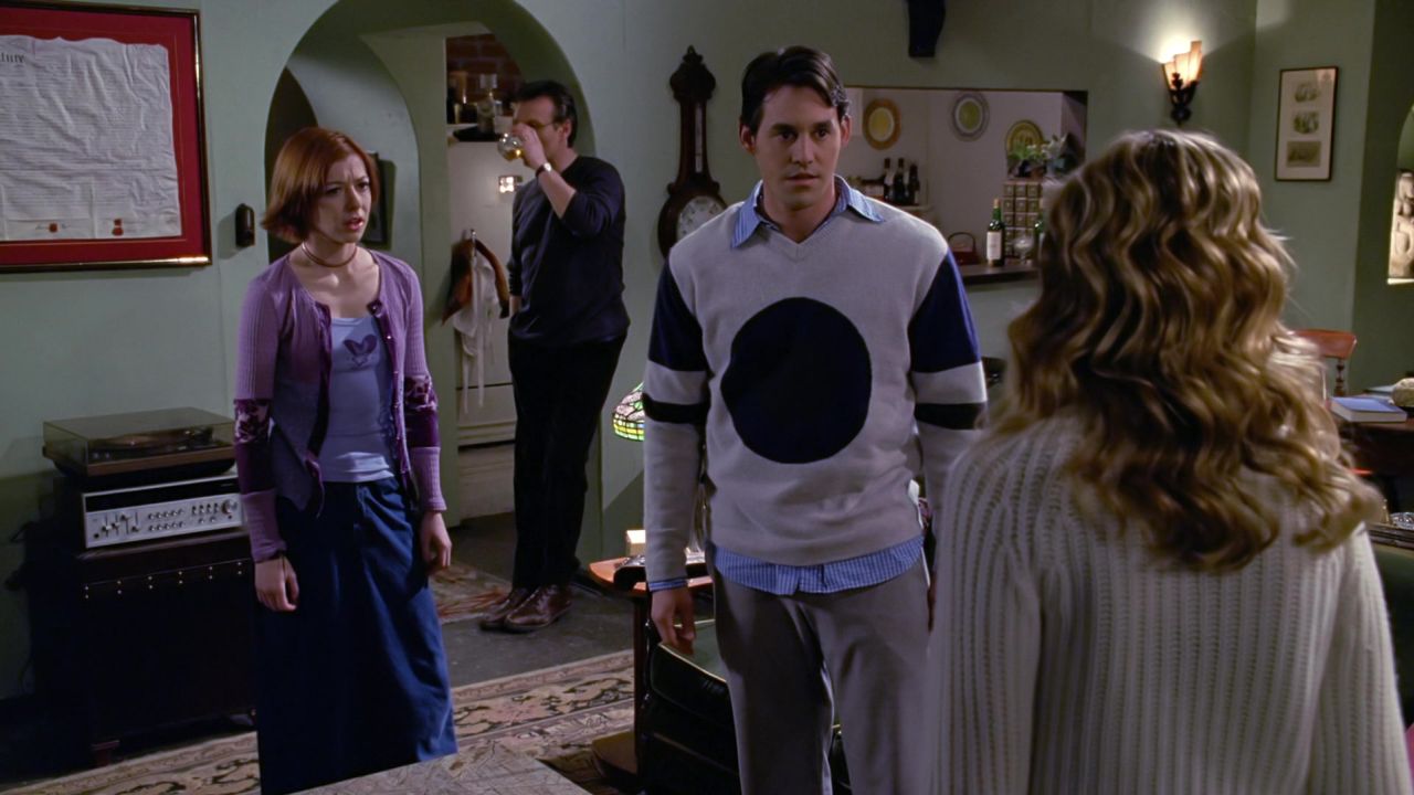 1999. S’il ne reprend pas sa relation avec Cordélia, il renoue néanmoins le dialogue, tandis que cette dernière prend d’avantage ses distances avec le groupe. Elle ne se gêne pas pour lui rappeler fréquemment sa longue série d’échecs et d’humiliations pour s’en délecter. Alex de son côté rouvre aussi le dialogue avec Oz, qui, en bonne intelligence, choisit de ne pas lui en vouloir, luttant ensemble au sein du groupe contre les forces du Mal.
